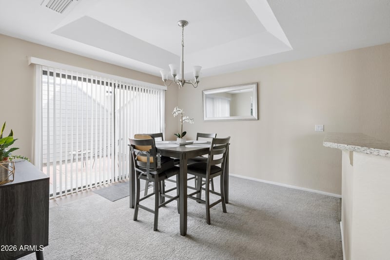 Listing details for 9439 59th Ave #143, Glendale, AZ 85302 : Welcome to your beautifully updated condo steps away from Glendale Community College. This 2 bed 2 bath ground level unit offers the perfect blend of comfort and style. The updated kitchen flows into both the living and dining spaces. The kitchen features granite countertops and stainless steel appliances. Enjoy dinners in your dining nook or outside on your private patio. The primary bedroom features two closets, offering plenty of storage, as well as a double vanity bathroom! This unit features a private 1 car garage as well as a stackable washer and dryer which are included with the sale. Welcome home!