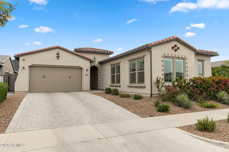 Listing details for 9719 Supernova Dr, Mesa, AZ 85212 : Elevated Eastmark Living! Built in 2023 & exceptionally well-maintained, this home features a double-sided iron front door opening to a private courtyard, setting the tone for a bright & open layout with thoughtful design throughout. The main living area showcases vaulted ceilings, luxury vinyl flooring & contemporary wall finishes, plus a massive sliding glass door that opens seamlessly to the backyard, flowing into the kitchen with a large center island, quartz countertops, stainless appliances including built-in oven & gas cooktop, custom backsplash & an oversized butler's pantry with extensive cabinetry & shelving. A formal dining area with its own slider & windows brings in natural light; plus a separate family room offers flexibility for a second lounge, office or playroom. The spacious primary suite includes dual vanities, soaking tub, dual-entry walk-in shower & two walk-in closets, one with direct access to the laundry room. Two additional bedrooms each include their own ensuite baths & all bedrooms feature walk-in closets. The 5th bedroom offers the option for a second primary suite or oversized bonus room. The backyard is designed for easy enjoyment with a covered patio, synthetic grass, pavers, water feature & block fencing. Additional features include an EV charging outlet. Located in Eastmark with parks, playgrounds, walking & biking trails, community pool & center, plus close proximity to Eastmark schools, Mesa Gateway Airport & convenient access to Loop 202 & SR24.