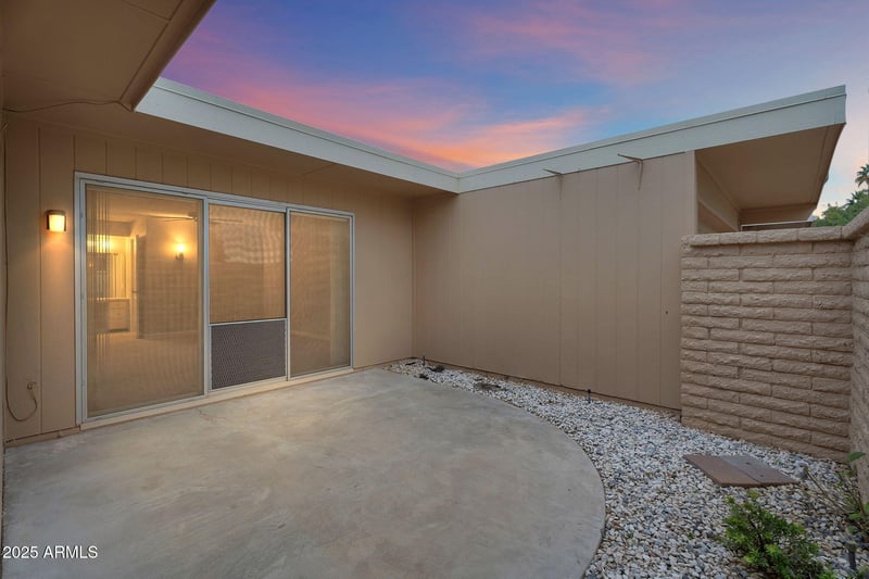 Listing details for 9810 Teakwood Dr, Sun City, AZ 85351 : Adorable 2 bed / 2 full bath with 2 patio spaces! Updated vinyl plank flooring! New interior paint! This spacious condo gives you a little bit of everything. Enjoy extra amenities like a single car garage, spacious laundry room with TONS of storage, a large living room, & reverse osmosis! The primary suite has an extra vanity w/ sink, along with a bathroom, which includes another sink & walk-in shower. The second bedroom has a vanity in the bedroom, walk-in closet, & it's own access via sliding door to one of the two patios. The second bathroom has a walk-in shower. The HOA covers water, sewer, garbage, front yard landscaping, ext. maintenance, & roof repairs. Sun City offers a resort-like lifestyle centered on recreation, fitness, social engagement, and community activities. Whether you enjoy golf, swimming, clubs, crafts, music, or just staying active and meeting new people, Sun City provides a rich array of amenities tailored to an active adult lifestyle!