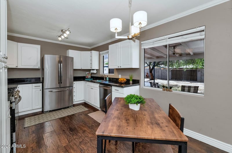 Listing details for 9815 5th Ave, Phoenix, AZ 85021 : Beautiful Home with Mountain Views & Outdoor Lifestyle Access! Enjoy the Arizona lifestyle in this wonderfully situated home featuring mountain views, morning sunrises & evening desert skies. This home is located within close proximity and easy access to scenic hiking trails within North Mountain Park and Phoenix Mountain Preserve, not to mention the convenience of a large public park with grassy areas, playground, basketball courts, and a beautiful community garden - all just down the street. Inside, the home offers a well-designed kitchen with granite countertops, stainless steel appliances, and a gas range--perfect for cooking and congregating. The spacious primary bedroom provides a relaxing retreat with an ensuite bathroom and walk-in shower. Upgrades include plantation shutters and crown molding throughout. A 10-foot RV gate adds flexibility for parking and storage. A quiet street, 5th Ave ends at a cul-de-sac for no thru-traffic. Located within the "A Rated" Sunnyslope High School boundary! This home is also conveniently located near everyday amenities for a rare blend of city comfort and functionality, yet also has easy access to the natural beauty of the surrounding mountains.