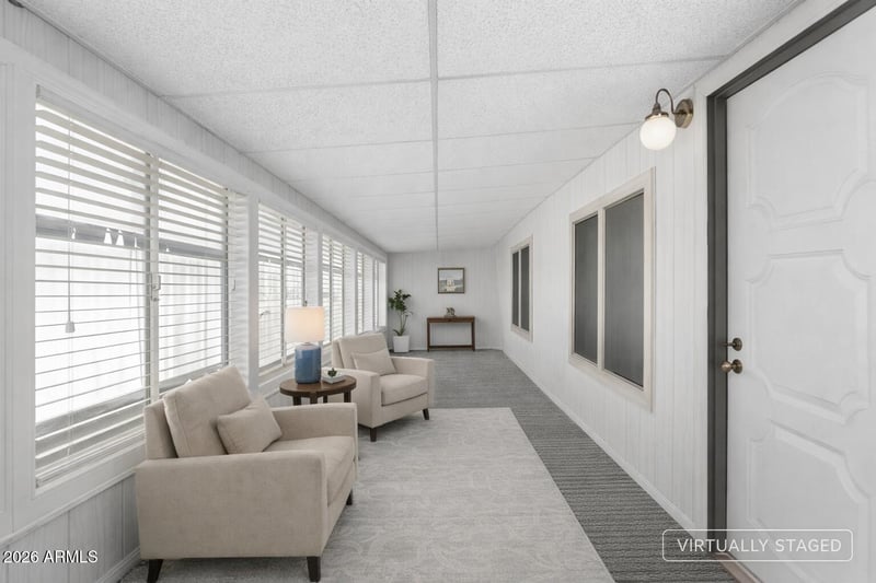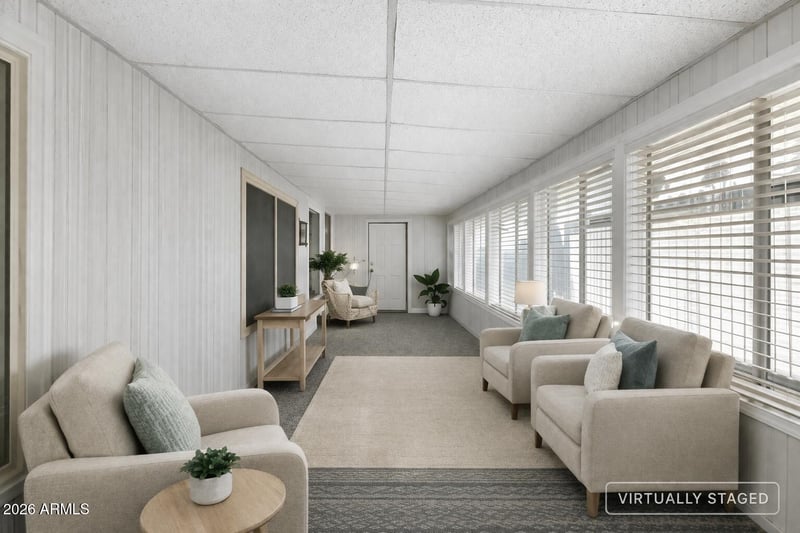 1,736 square feet with a rare expanded layout you won't find anywhere else in the community. This 2 bed, 2 bath split floorplan includes a massive window-lined Arizona room plus a separate private office--perfect for guests, hobbies, or extra living space.